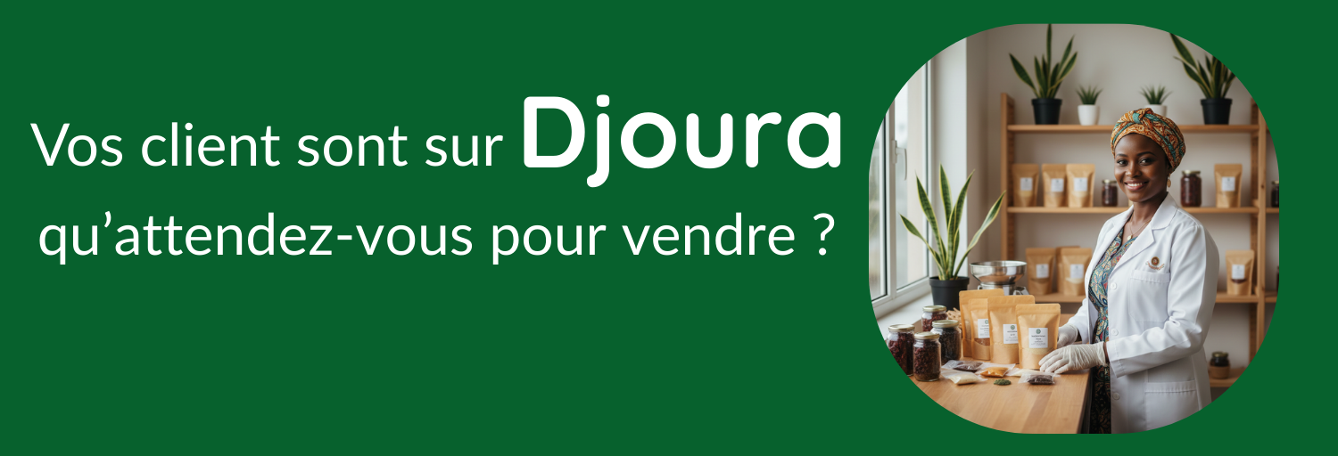 Accueil/Vendez sur Djoura Vendez sur Djoura Commencez à vendre Qui peut vendre sur DJOURA ? Être commerçant ou producteur déclaré :Vous devez proposer des produits légaux et conformes aux réglementations en vigueur.Proposer des produits de qualité :Les articles doivent correspondre aux descriptions et aux attentes des clients.Respecter les délais de traitement :Les commandes doivent être confirmées et préparées dans un délai raisonnable.Assurer un service client professionnel :Répondre aux demandes et garantir une bonne expérience d’achat. Pourquoi vendre sur DJOURA ? Visibilité renforcée Augmentez votre présence en ligne et présentez vos produits à une audience plus large grâce à une plateforme dédiée aux entrepreneurs locaux. Paiement sécurisé Offrez à vos clients une expérience d’achat fiable avec un système de transaction sécurisé et transparent. Gestion simplifiée Ajoutez, modifiez et suivez vos produits facilement grâce à une interface intuitive pensée pour les vendeurs. Accompagnement professionnel Bénéficiez d’un support dédié et de conseils pour développer votre activité et améliorer vos performances. Comment ça fonctionne Prêt à développer votre activité ? Rejoignez DJOURA et commencez à vendre vos produits en ligne dès aujourd’hui. Une opportunité simple, professionnelle et accessible. Commencez à vendre